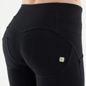 3 – La conformación del tiro, los materiales utilizados y el tipo de costura hacen que el pantalón se adhiera a la perfección al surco interglúteo e induzca una tensión hacia lo alto.